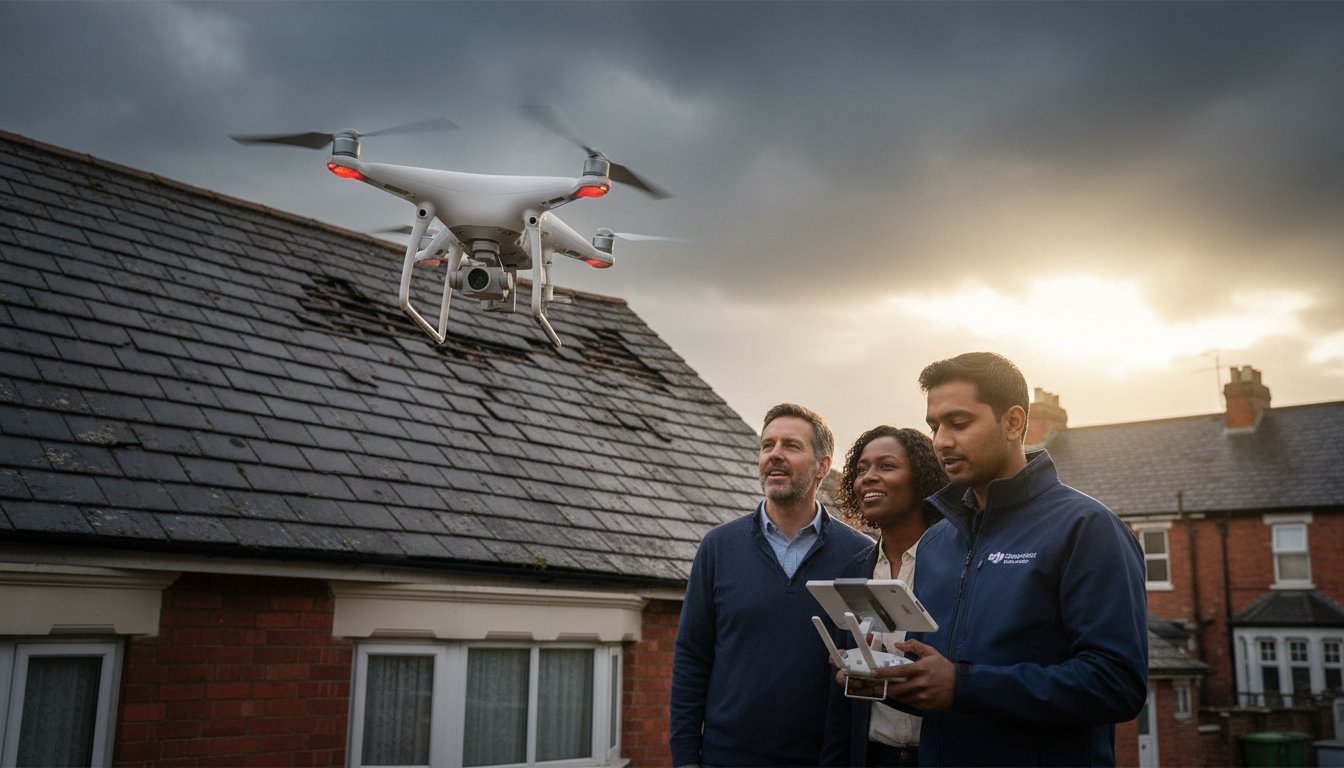 On a wet Tuesday morning after a severe Atlantic storm, you spot missing tiles and a spreading damp patch on your ceiling. You know that waiting for a traditional surveyor to erect scaffolding, which often costs upwards of £600 before the inspection even begins, risks turning a minor leak into a structural catastrophe. It’s stressful to feel like your property is deteriorating while you wait for a safe window to get a ladder up. You shouldn’t have to risk a fall or pay thousands in access fees just to see what’s happening on your own roof.